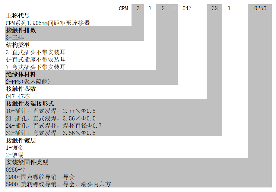 連接器型號(hào)命名: